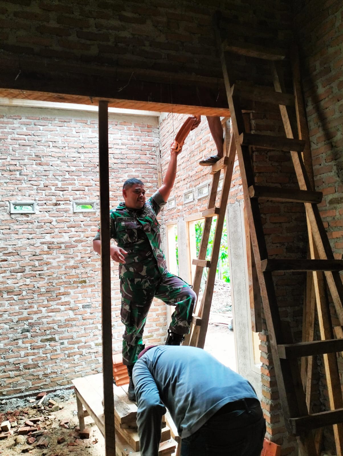 Dalam kegiatan tersebut, Babinsa bersama warga bahu-membahu mengangkat dan menyusun genteng sebagai bagian dari penyelesaian atap rumah milik Bapak Sugandi, salah satu warga yang tengah membangun rumah barunya secara swadaya.“Sebagai aparat kewilayahan, sudah menjadi tugas kami untuk selalu hadir dan membantu masyarakat. Kegiatan ini juga menjadi sarana mempererat hubungan antara TNI dan warga,” ujar Sertu Moh Hasyim di sela-sela kegiatan.