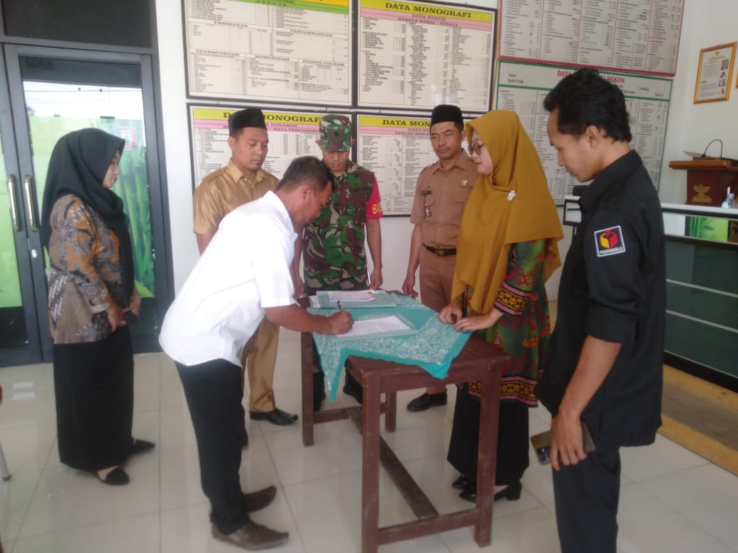 Setelah pengambilan sumpah, Ketua PPS Pekon Sidodadi & Pekon Pujodadi melakukan penandatanganan Pakta Integritas secara simbolis kepada salah satu petugas PANTARLIH.