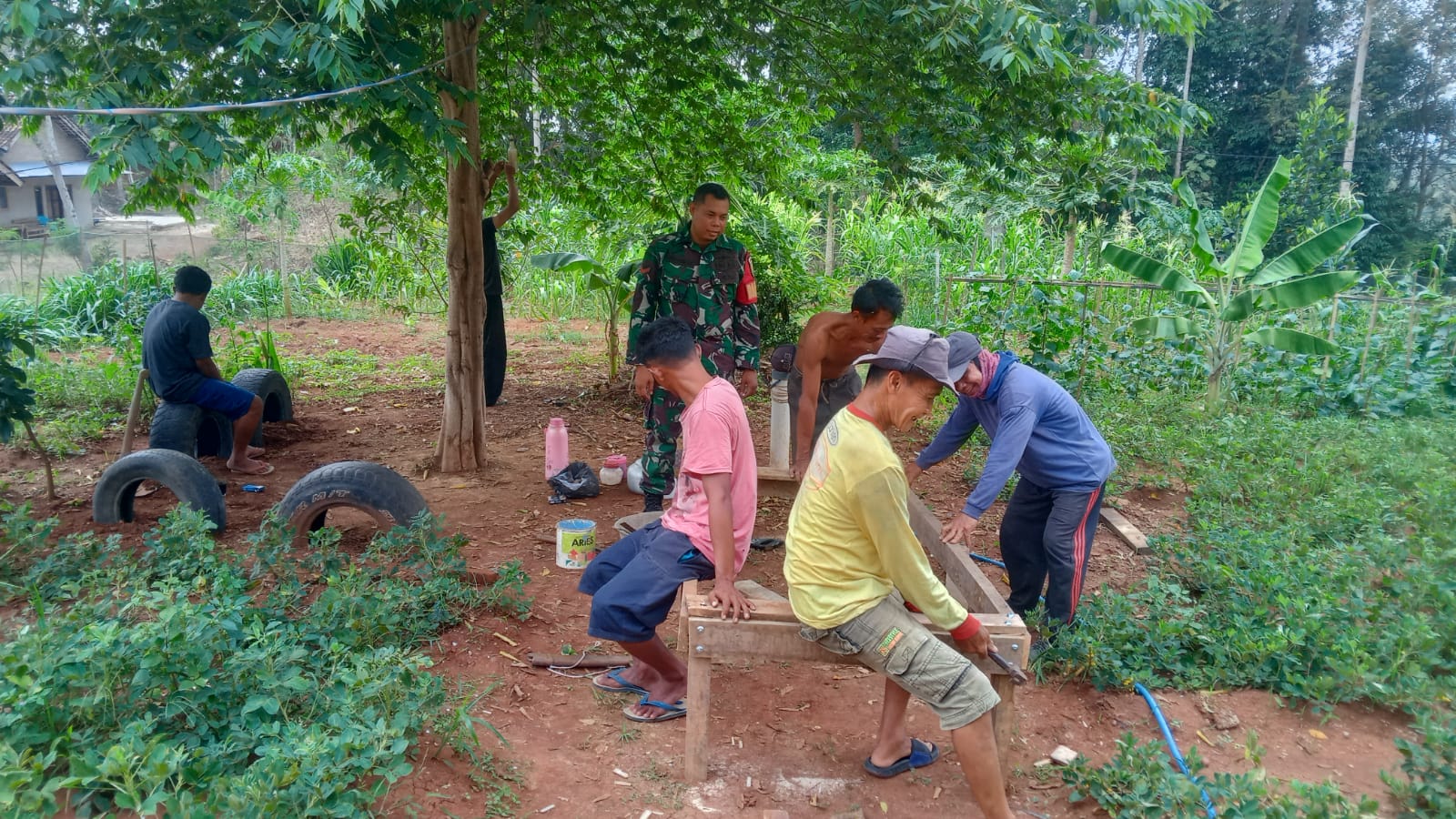 Babinsa Koramil 424 – 10/ Pardasuka, Kopda Nurohman lakukan Komunikasi Sosial (Komsos) dengan tukang kayu di Pekon Suka Agung Barat, Kec. Bulok, Kab. Tanggamus. Minggu (05/01/2025).
