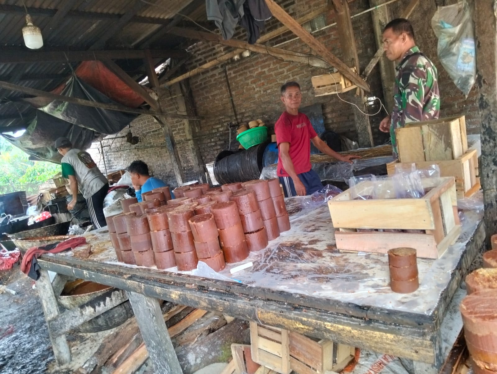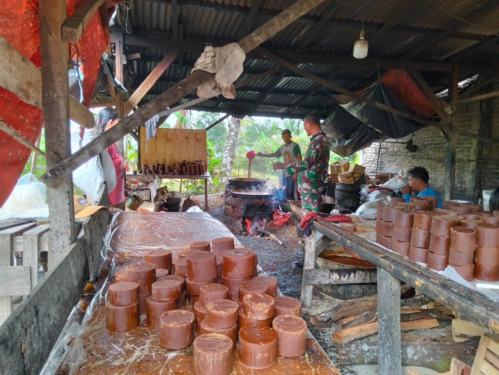 Dalam pendampingannya, Serda Andriadi turut membantu proses produksi mulai dari pengolahan nira hingga pencetakan gula aren, sekaligus memberikan motivasi agar masyarakat terus meningkatkan kualitas dan produktivitas hasil olahan.