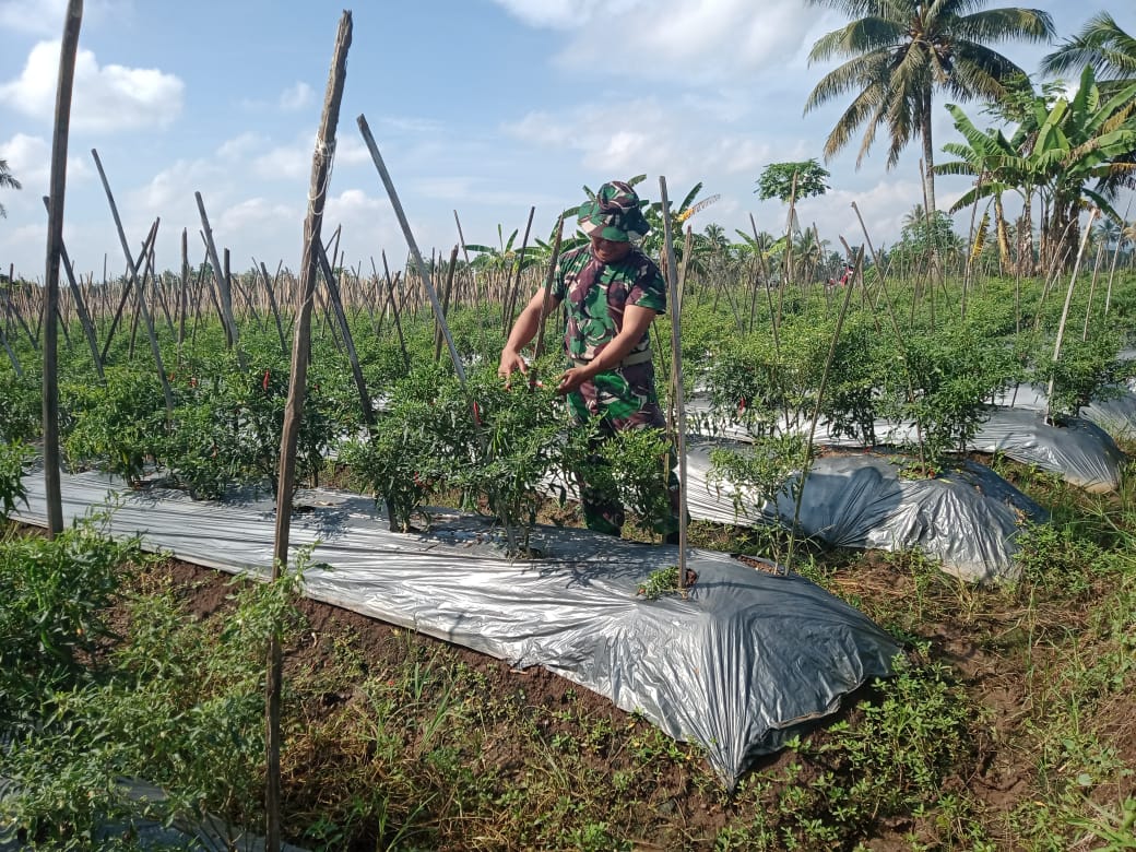 Babinsa Kramil 424-10/Pardasuka Dampingi Sekaligus Bantu Petani Panen Cabai Merah