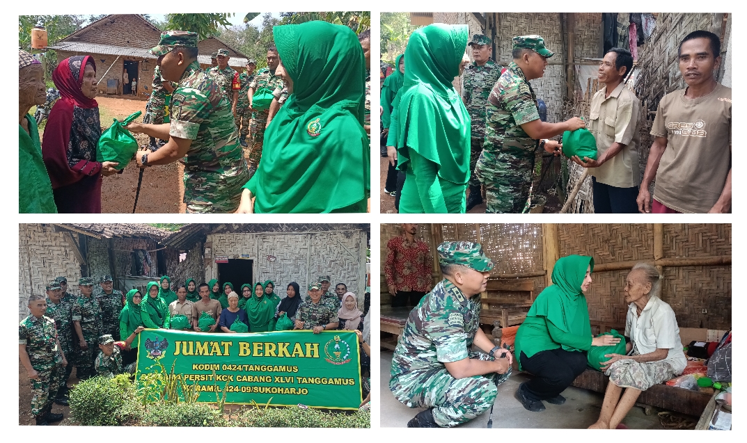 .Program Jumat Berkah Kodim 0424/Tanggamus pekan ini dipimpin Dandim 0424/Tanggamus, Letkol Inf Vicky Heru Harsanto, S.I.P., M.Si dan didamping Ketua Persit KCK Cab. XLVI, Ny Lia Heru Harsanto, kembali membagikan puluhan paket Sembako kepada warga kurang mampu di wilayah teritorial Koramil 424 – 09/ Sukoharjo di Pekon Sukoharjo IV, Kec. Sukoharjo, Kab. Pringsewu. Jum’at (27/09/2024).