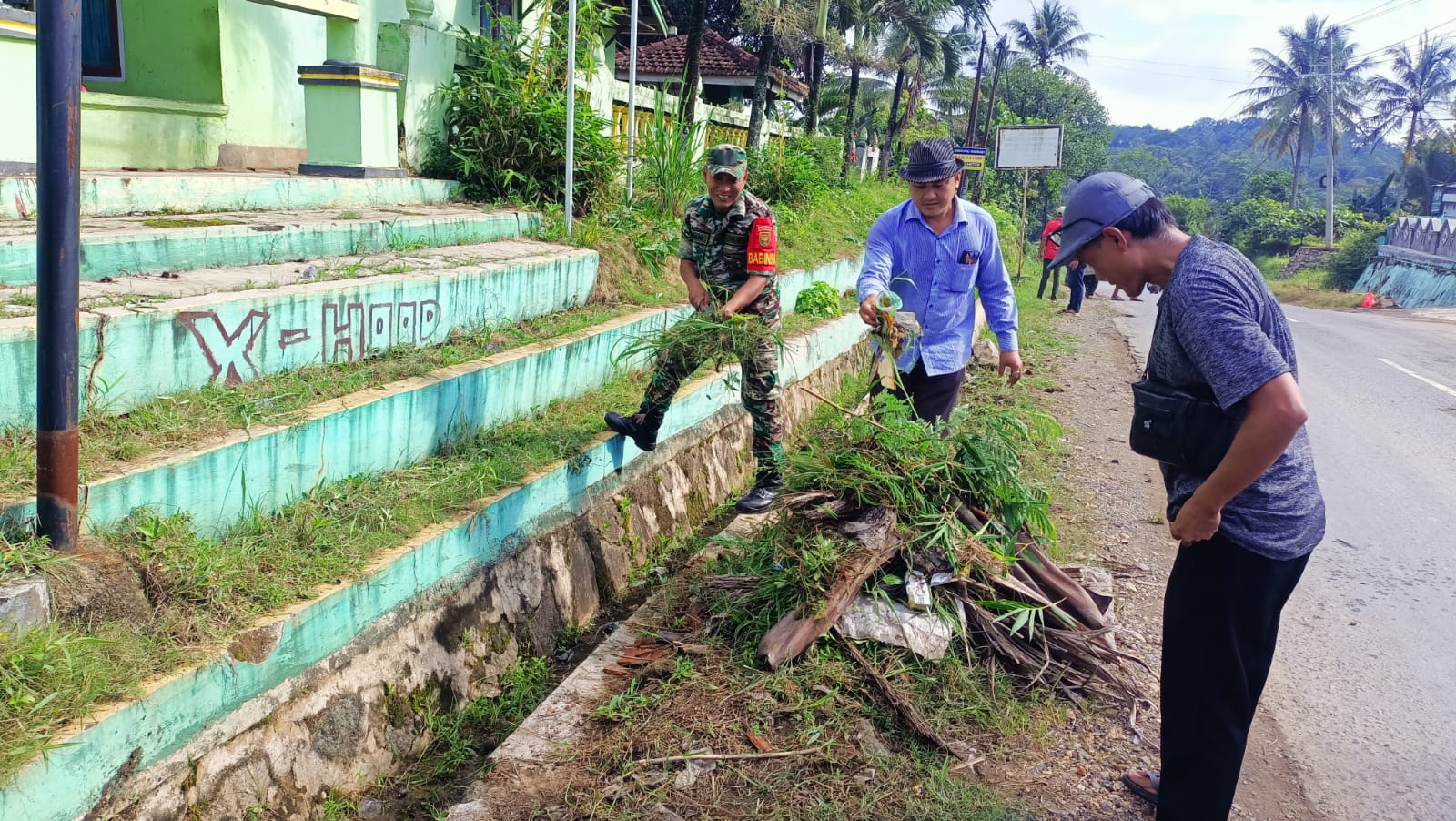 Babinsa Koramil 424-09/Sukoharjo Serma Solfani bersama warga melaksanakan kegiatan Karya Bhakti Jumat Bersih pembersihan ruas kanan kiri jalan yang berlokasi di Pekon Enggal Rejo, Kec. Adiluwih, Kab. Pringsewu, Jum’at (28/02/2025).