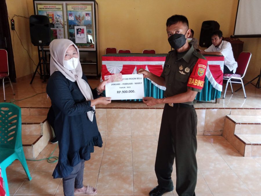 Pendampingan yang dilaksanakan oleh Babinsa, bertujuan untuk mendukung pelaksanaan dan edukasi pelaksanaan bantuan, serta penerapan Protokol terkait yang merupakan syarat utama untuk penyebaran Pandemi Covid 19. Total 65 KK di Pekon Tanjung Agung menerima BLT DD, dengan nominal masing-masing KK sebesar Rp. 300.000,- yang dilaksanakan di Kantor Pekon.