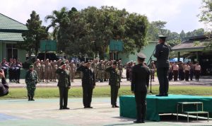 Kodim 0424/Tanggamus melaksanakan Upacara Peringatan Hari Ulang Tahun (HUT) Tentara Nasional Indonesia (TNI) ke-80 tahun 2025 dengan tema “TNI Prima – TNI Rakyat – Indonesia Maju”, bertempat di Lapangan Makodim 0424/Tanggamus, Minggu (5/10/2025). Upacara berlangsung khidmat dan penuh semangat nasionalisme.