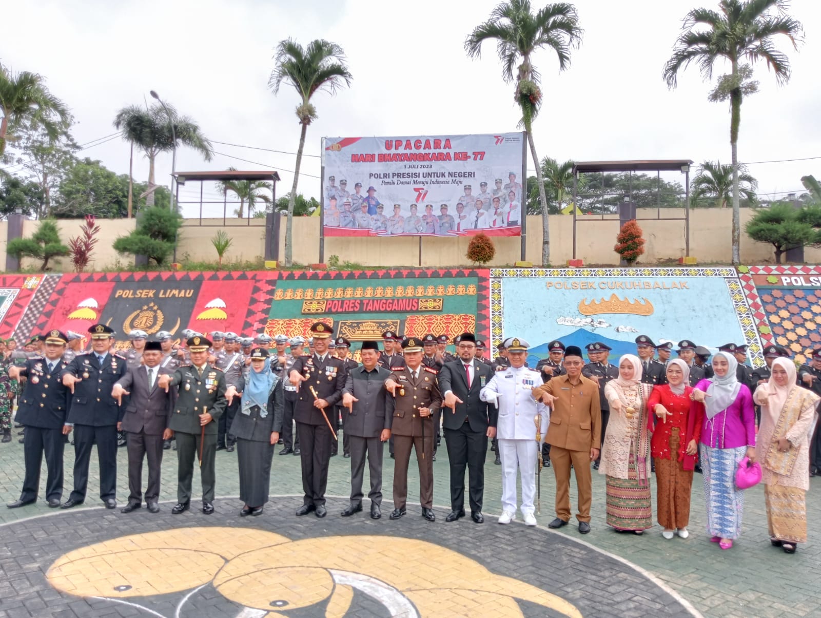 Upacara yang digelar secara langsung jajaran Polri diseluruh Indonesia ini untuk memperingati HUT Bhayangkara Ke-77 Tahun 2023 dengan tema “Polri Presisi Untuk Negeri” merupakan bukti hubungan erat antara TNI-Pori dalam menjaga Ketertiban dan Keamanan Republik Indonesia.