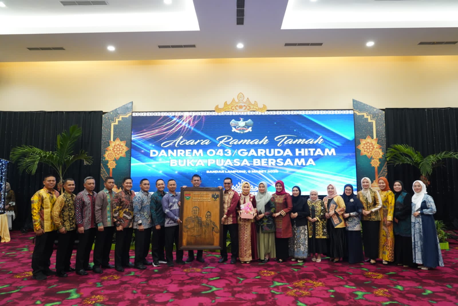 Lampung – Dandim 0424/Tanggamus Letkol Inf Dwi Djunaidi Mulyono, S.E., M.I.P., didampingi Ketua Persit Kartika Chandra Kirana Cabang XLVI Dim 0424/Tanggamus Ny. Tika Dwi Djunaidi M., menghadiri kegiatan buka puasa bersama dan ramah tamah yang digelar oleh Danrem 043/Garuda Hitam Brigjen TNI Haryantana, S.H.Selasa (10/03/2026).