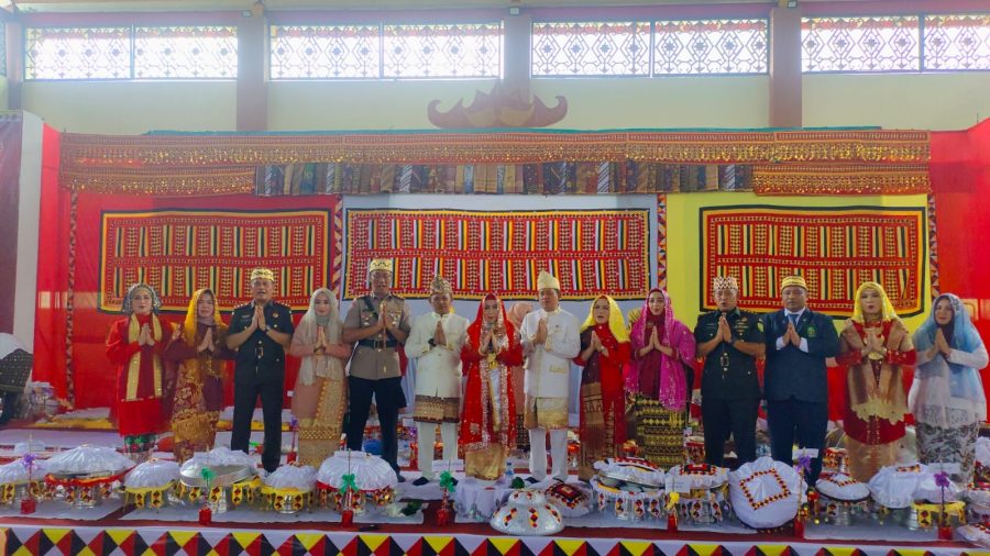 Dandim 0424/Tanggamus Letkol Inf. Vicky Heru Harsanto, S.I.P.,M.Si beserta Ketua Persit KCK Cabang XLVI menghadiri acara Pangan Balak di GOR Ratu Dusun Waysom Pekon Kotaagung Kampung Kecamatan Kotaagung. Senin (20/3/2023).