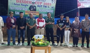 Dandim 0424/Tanggamus Letkol Inf Vicky Heru Harsanto S.I.P., M.Si. membuka turnamen Volli Dandim Cup dalam rangka HUT TNI Ke-78 Tahun 2023 di Pekon Pandasari Selatan Kecamatan Sukoharjo Kab. Pringsewu. Senin (02/10/2023).