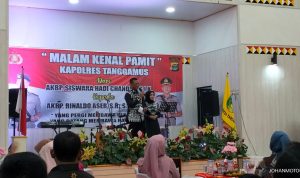 Dandim 0424/Tanggamus Letkol Inf Vicky Heru Harsanto. S.I.P., M.Si beserta istri Ny. Lia Vicky Heru menghadiri Acara Kenal Pamit Kapolres Tanggamus dari Akbp AKBP. Siswara Hadi Chandra, S.I.K kepada AKBP. Rinaldo Aser, S.H,. S.I.K,. M.Si bertempat di Aula Islamic Center Kota Agung, Kabupaten Tanggamus. Selasa malam (09/1/24).
