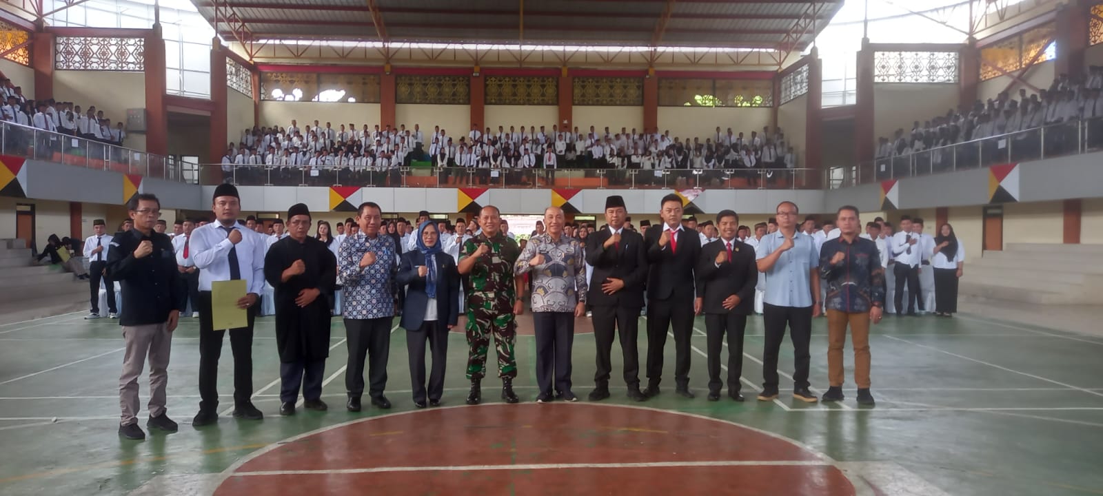 Dandim 0424/Tanggamus Letkol Inf Vicky Heru Harsanto S.I.P.,M.Si menghadiri kegiatan Pelantikan Dan Pengambilan Sumpah/Janji Anggota Panitia Pemungutan Suara (PPS) Pada Pemilihan Gubernur Dan Wakil Gubernur, Bupati Dan Wakil Bupati Tahun 2024 bertempat di Gedung Olah Raga (RATU), Jln. Pedukuhan Tulung Langok, Pekon Kota Agung Kampung, Kecamatan Kota Agung, Kabupaten Tanggamus, Minggu (26/05/2024).