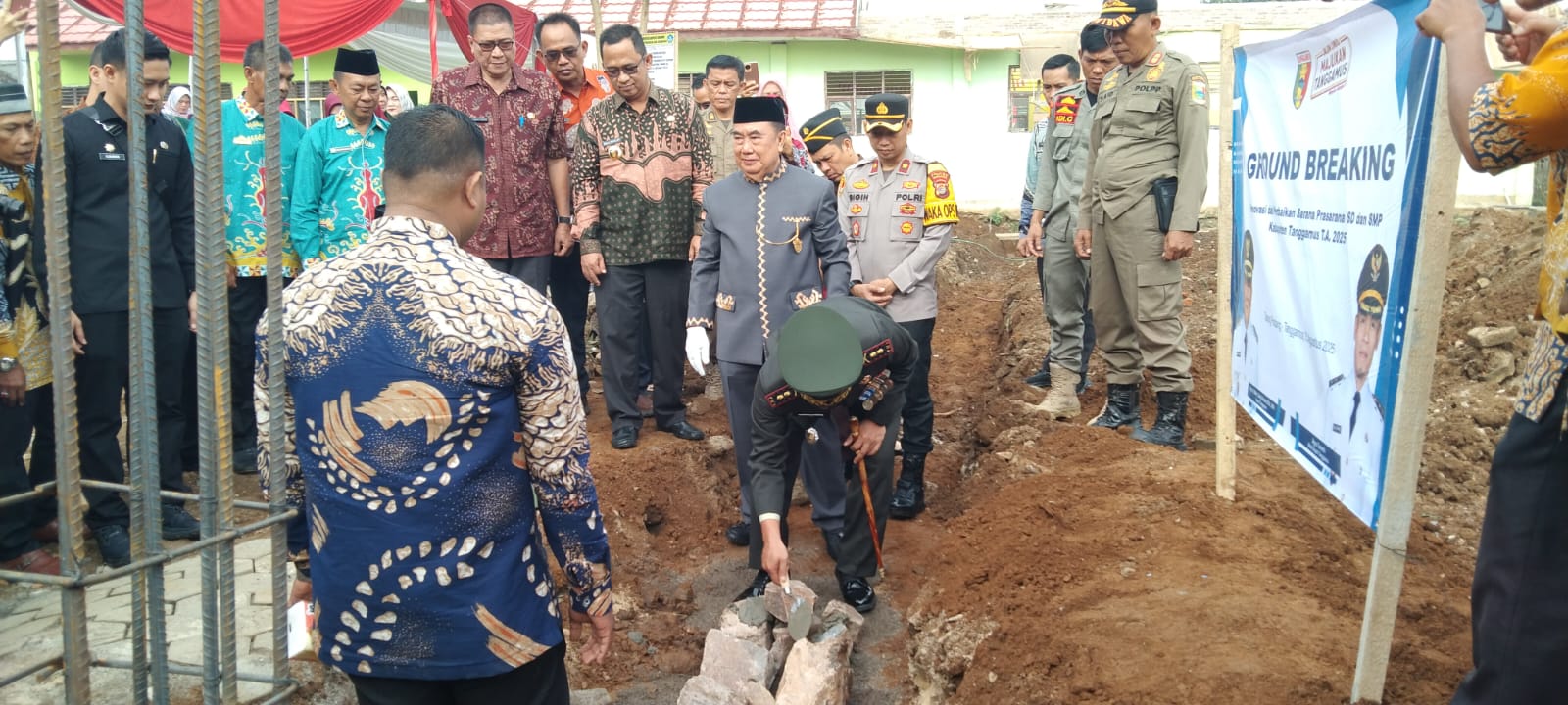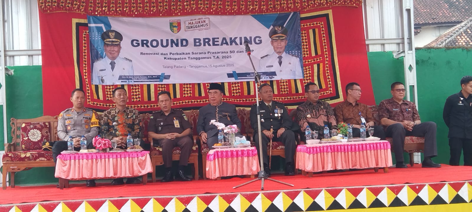 Dandim 0424/Tanggamus Letkol Inf Dwi Djunaidi Mulyono, S.E.,M.I.P., menghadiri kegiatan Peletakan Batu Pertama Rehabilitasi SDN 1 Talang Padang dalam program Renovasi dan perbaikan sarana dan prasarana SD dan SMP di Kabupaten Tanggamus Tahun 2025, bertempat di Komplek SDN 1 Talang Padang, Jl. M. Ratam Pekon Sukarame Kec. Talang Padang Kab. Tanggamus, Jum’at (15/08/2025).