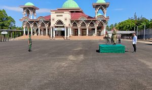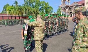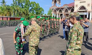 Tanggamus – Dandim 0424/Tanggamus Letkol Inf Dwi Djunaidi Mulyono, S.E., M.I.P., menghadiri upacara penyambutan personel Yonif TP 845/Pandu Pepadun Cakti yang berlangsung khidmat di Halaman Islamic Center Kotaagung, Pekon Kedamaian, Kecamatan Kotaagung, Rabu (18/03/2026).