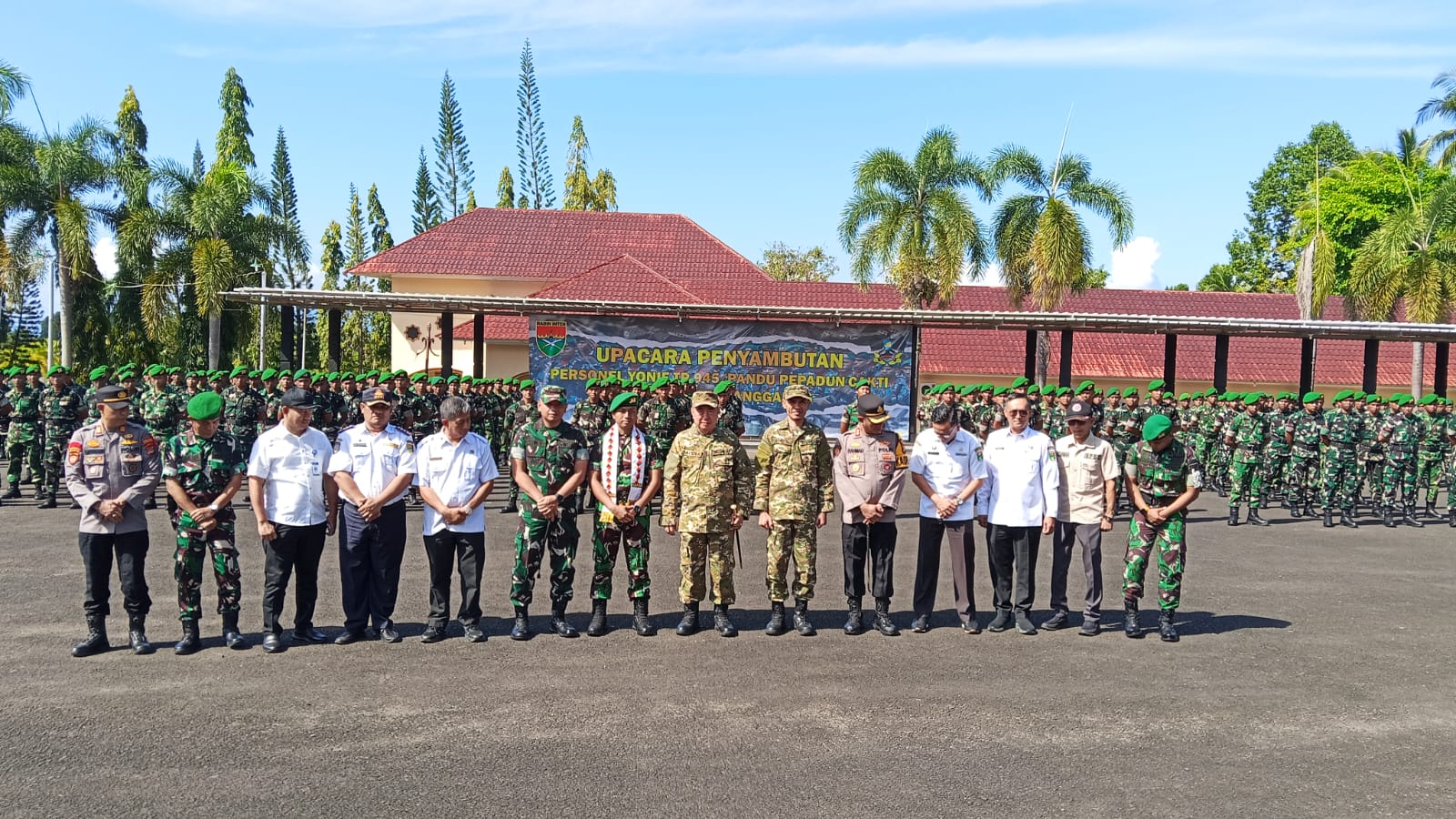 Upacara penyambutan berlangsung tertib, lancar, dan penuh semangat kebersamaan, sebagai wujud nyata kemanunggalan TNI dengan rakyat.