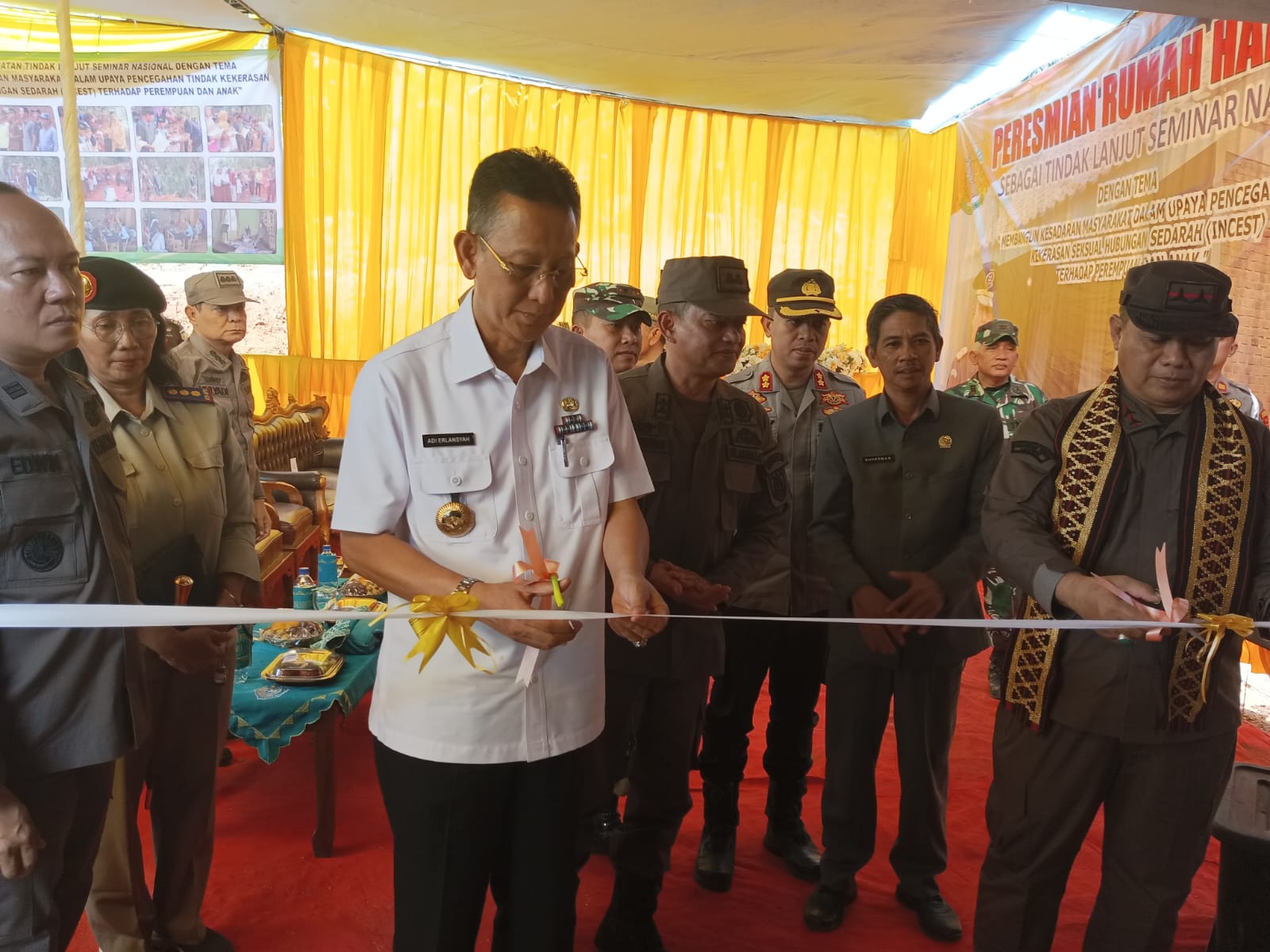 Dandim 0424/Tanggamus Letkol Inf Vicky Heru Harsanto. SIP,.M.Si menghadiri Peresmian dan Penyerahan Rumah Harapan dengan tema “Membangun kesadaran masyarakat dalam upaya pencegahan tindak kekerasan seksual hubungan sedarah ( Incest ) terhadap perempuan dan anak”, di Pekon fajar mulya, kec. pagelaran Utara. Rabu (11/10/2023).