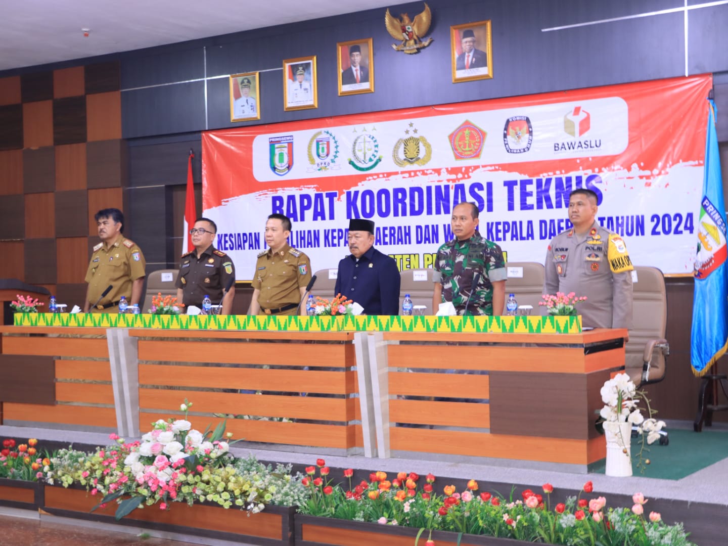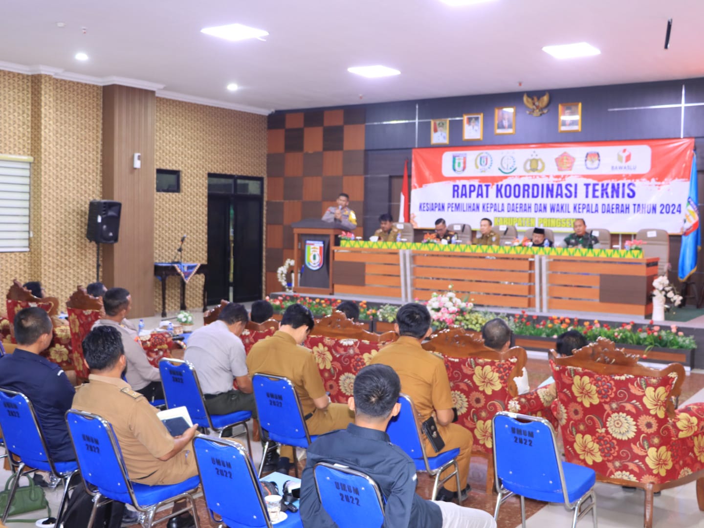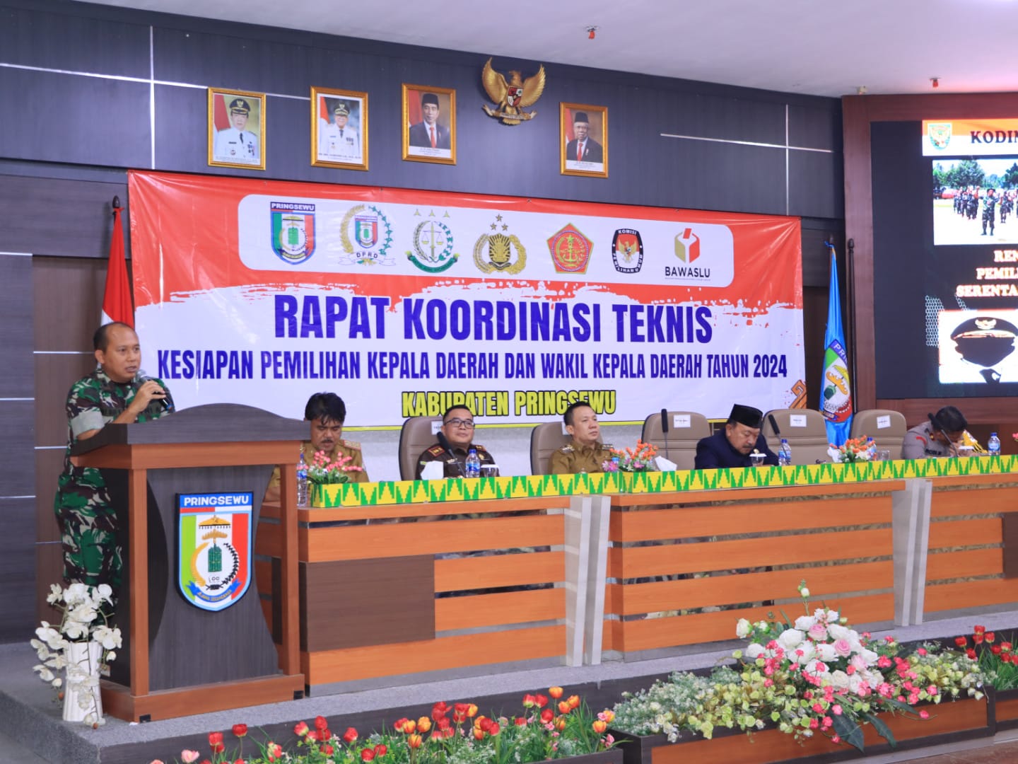 Dandim 0424/Tanggamus Letkol Inf Vicky Heru Harsanto.S.I.P., M.Si menghadiri rapat koordinasi teknis untuk optimalisasi kesiapan pelaksanaan Pemilihan Kepala Daerah (Pilkada) di Kabupaten Pringsewu Tahun 2024. bertempat di Aula Bupati Kab. Pringsewu. Rabu (07/08/2024).