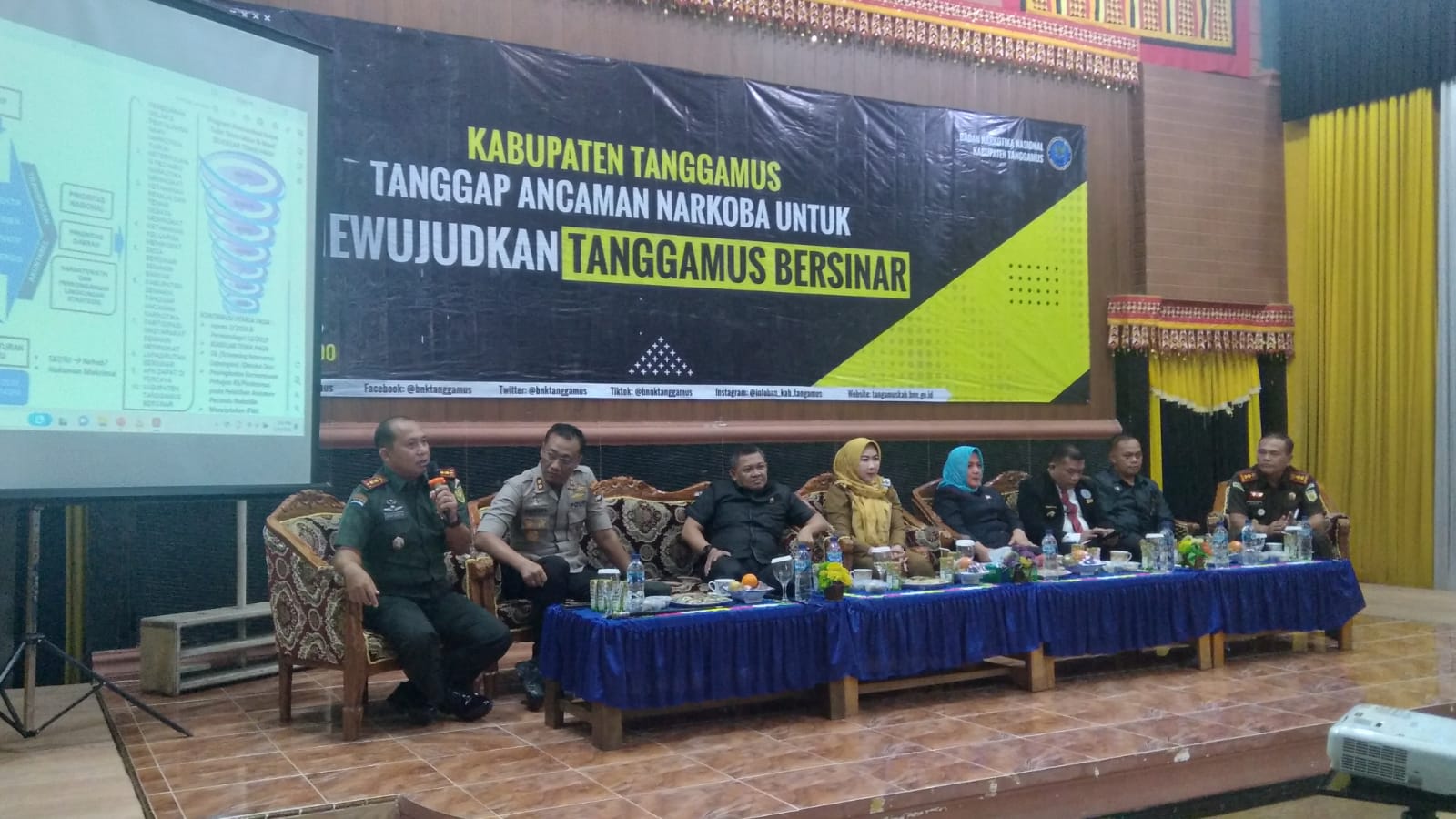 Hadir dalam kegiatan Bupati Tanggamus Hj. Dewi Handajani, Ketua DPRD Heria Agus Setiawan, Porkofimda, Kepala BNN Tanggamus Dr. Bentonius Silitonga, S.E.,M.Si, Kalapas II Kotaagung, Karutan Kotaagung, Kepala OPD terkait, dari PKK Tanggamus, dan Jajaran BNN Tanggamus.