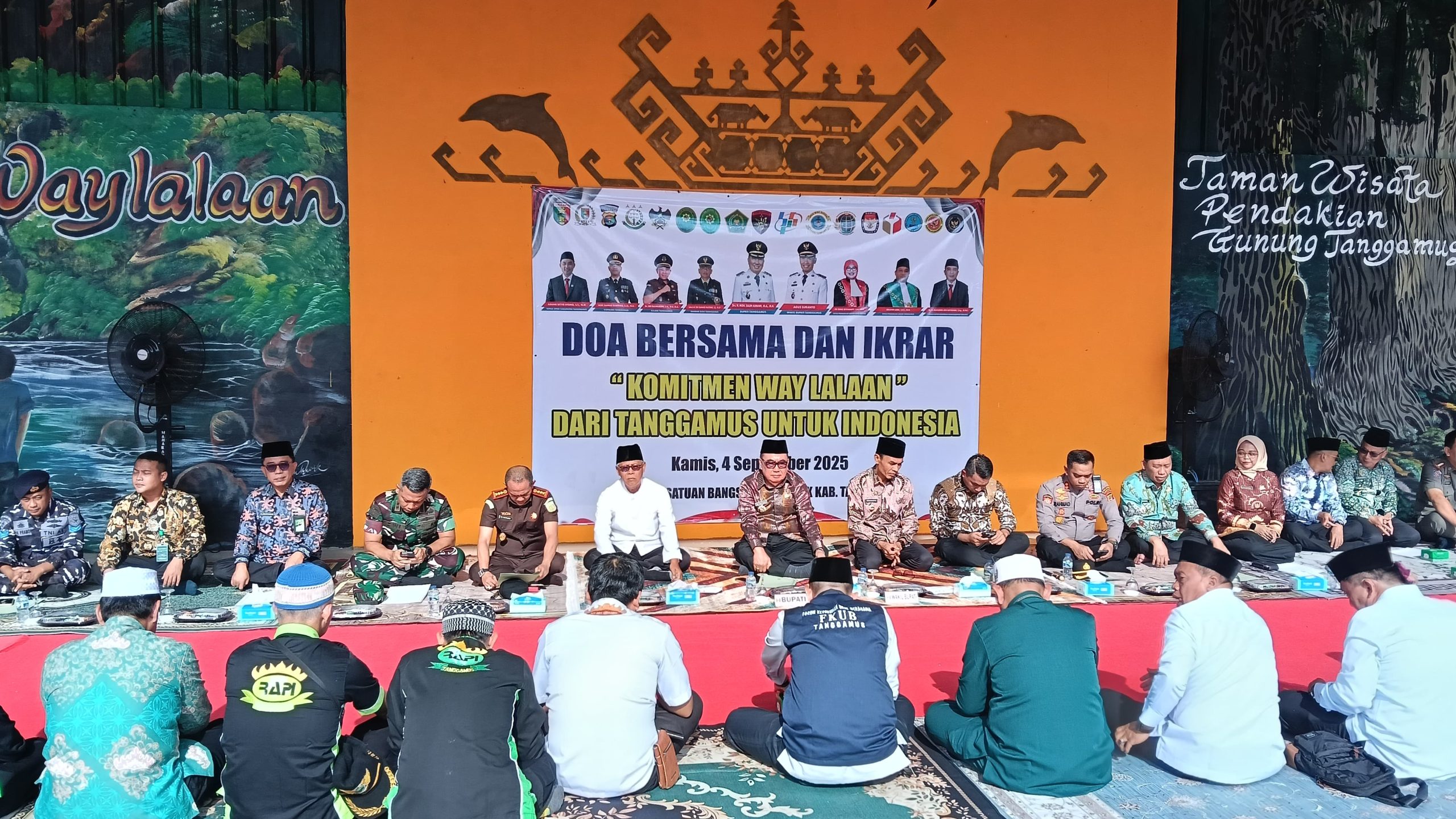 Dandim 0424/Tanggamus Letkol Inf Dwi Djunaidi Mulyono, S.E.,M.I.P. menggikuti Doa Bersama dan Ikrar “Komitmen Way Lalaan” Dari Tanggamus Untuk Indonesia yang digelar oleh Pemerintah Kabupaten Tanggamus, untuk menciptakan lingkungan yang aman dan harmonis di Sanggar Budaya Way Lalaan Kota Agung Timur, Kamis (04/09/2025).