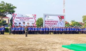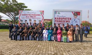 Pj Bupati Pringsewu Marindo Kurniawan dalam upacara peringatan HUT Kabupaten Pringsewu Kabupaten Pringsewu dibentuk berdasarkan Undang-undang No 48 tahun 2008, dan diresmikan oleh Menteri Dalam Negeri Mardiyanto pada 3 April 2009 di Gedung Sasana Bhakti Praja Depdagri.Dengan luas wilayah sebesar 625 km atau setara 2℅ dari luas Provinsi Lampung. Jumlah penduduk Kabupaten Pringsewu sebesar 406.823 jiwa yang tersebar pada 126 pekon dan dua pekon persiapan serta lima kelurahan di sembilan kecamatan.