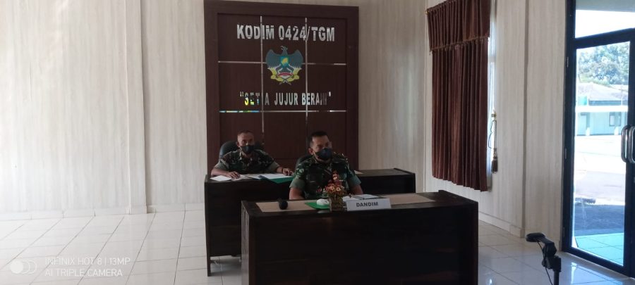 Tanggamus – Dandim 0424/Tanggamus Letkol Arm Micha Arruan, SE.,M.M , mengikuti Video Confrense (Vicon) percepatan Vaksinasi Selama Bulan Suci Ramadan 1443. H / Tahun 2022 bersama Pangdam II/SWJ Mayjen TNI Agus Suhardi bertempat di Ruang Pamungkas Kodim 0424/Tanggamus selasa (05/04/2022)