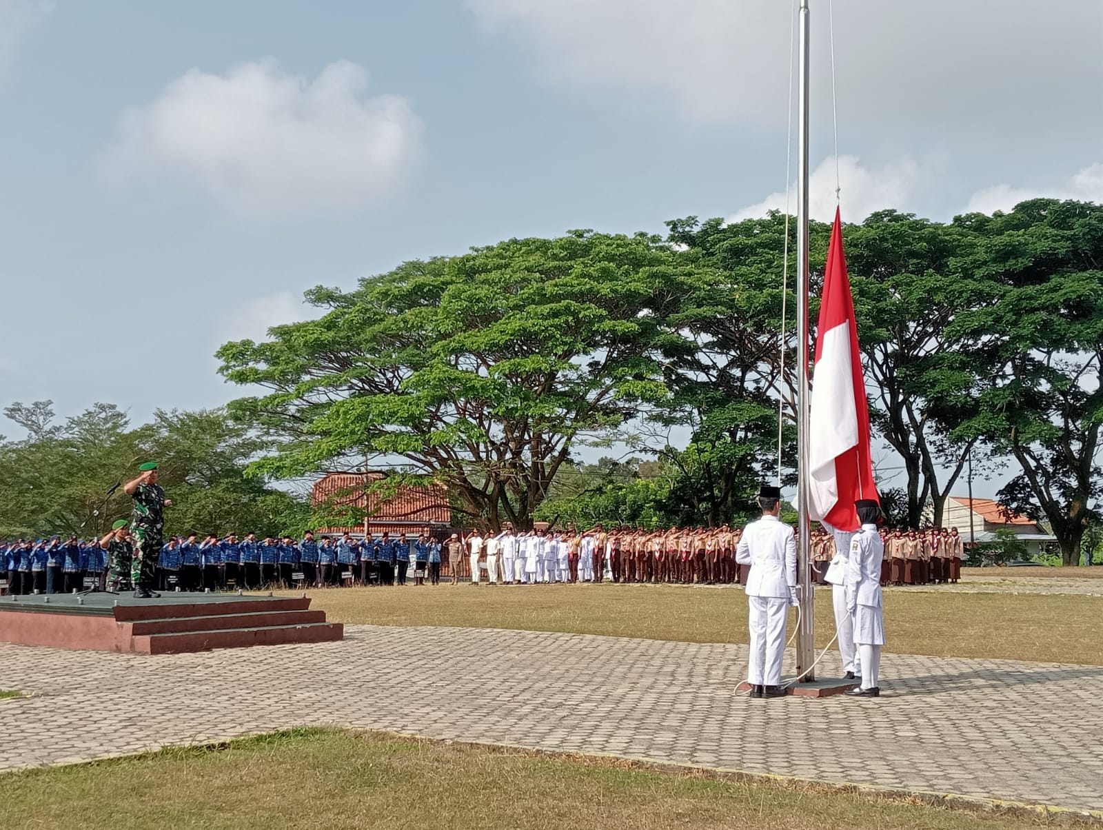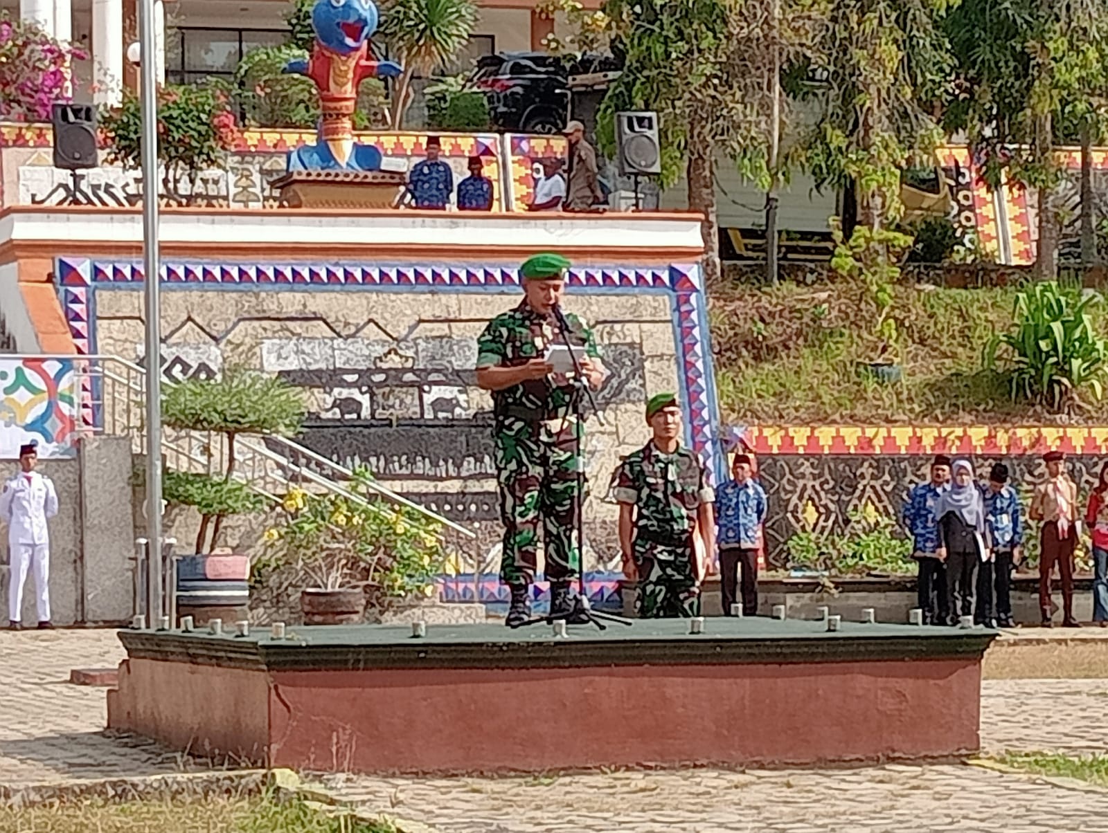 Dandim 0424/Tanggamus Letkol Inf Vicky Heru Harsanto. S.I.P.,M.Si saat membacakan teks pidato peringatan Hari Sumpah Pemuda dari Menteri Pemuda dan Olahraga (Menpora) RI Ario Bimo Nandito Ariotedjo. Mengambil tema ‘Bersama Majukan Indonesia’.
