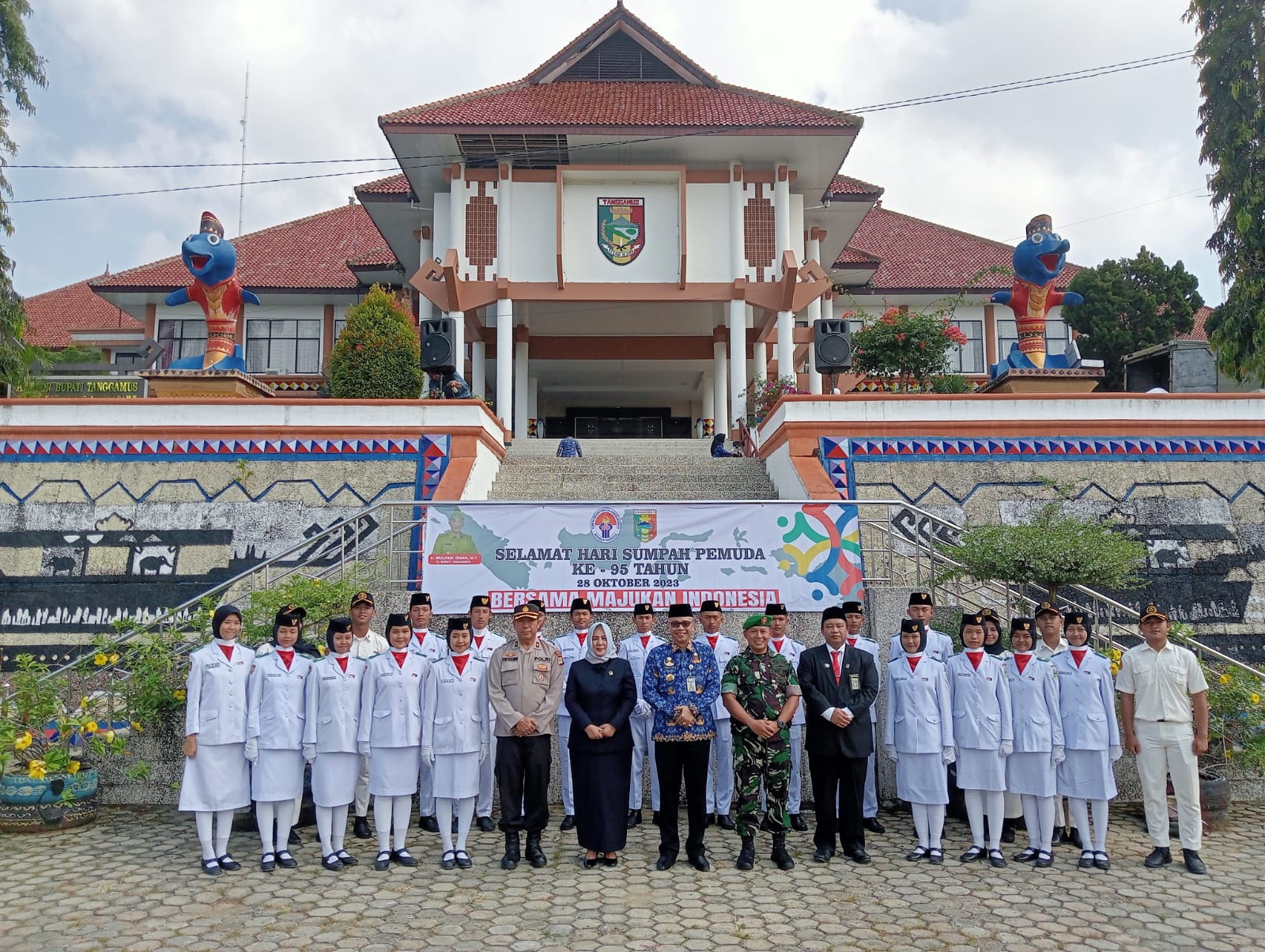 Dandim 0424/Tanggamus Letkol Inf Vicky Heru Harsanto. S.I.P.,M.Si menjadi Irup Sumpah Pemuda Ke 95 tahun 2023 di Kab. Tanggamus bertempat di lapangan Pemerintahan daerah Kabupaten Tanggamus.Senin (30/10/2023).