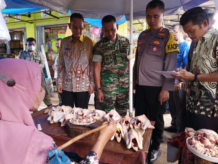 PRINGSEWU – Menyambut Natal 2022 dan Tahun Baru 2023 (Nataru), Dandim 0424/Tanggamus Letkol Arm Micha Arruan SE, MM, bersama Pj.Bupati Pringsewu Adi Erlansyah meninjau Pasar Pringsewu dan Pasar Gadingrejo, yang merupakan dua pasar tradisional terbesar di Kabupaten Pringsewu, Peninjauan ini guna memantau pergerakan harga bahan pokok menjelang hari besar tersebut.