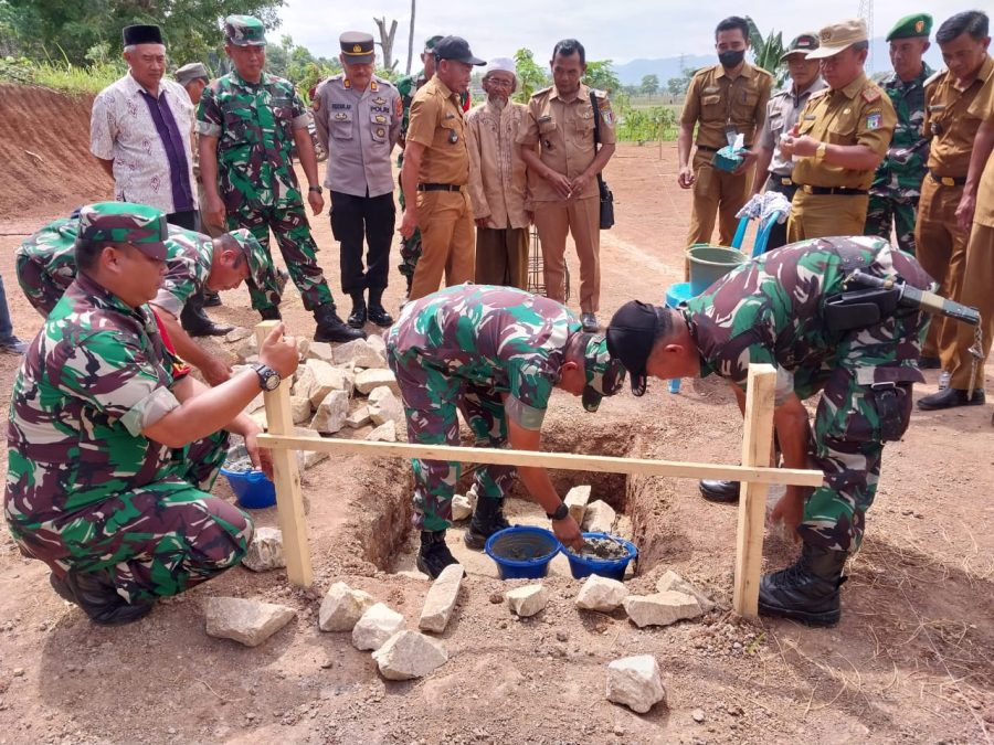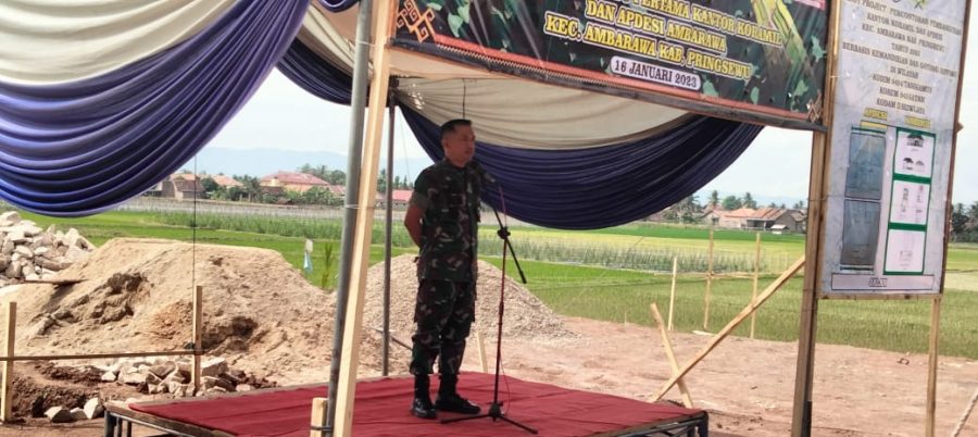 Pringsewu – Dandim 0424/Tanggamus Peletakan Batu Pertama Pembangunan Calon Kantor Koramil Persiapan Ambarawa Dan Calon Kantor Apdesi Kec. Ambarawa, bertempat di Lahan calon kantor Koramil persiapan Ambarawa Kab. Pringsewu,Senin (16-01-2023).