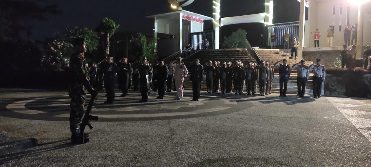 Malam menjelang HUT Kemerdekaan ke-79 Republik Indonesia, Pemerintah Kabupaten Tanggamus bersama TNI-POLRI menggelar Apel Kehormatan dan Renungan Suci (AKRS), bertempat di Taman Makam Pahlawan (TMP) Bahagia Pekon Kagungan, Kec. Kotaagung Timur, Kabupaten Tanggamus, Jumat (16/08/2024) malam..