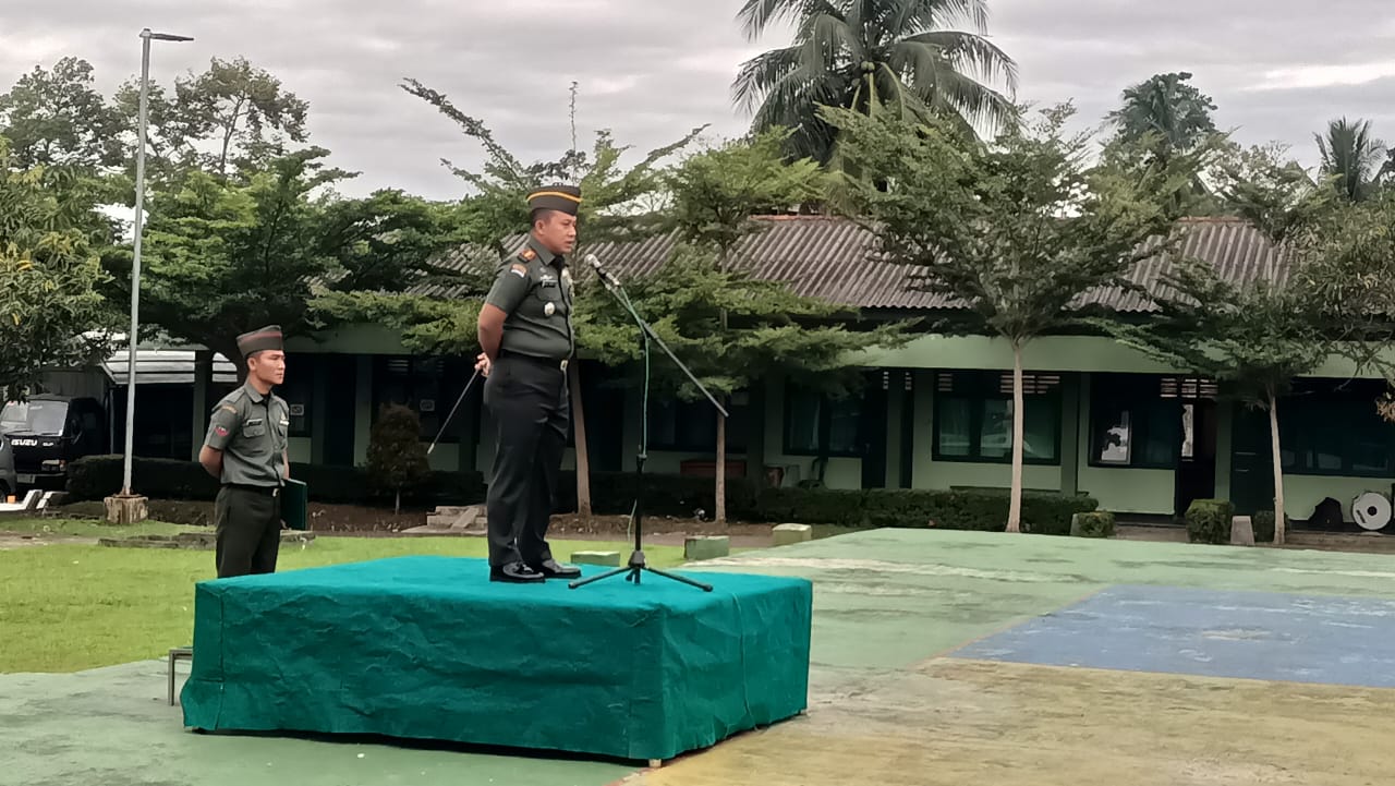Dandim 0424/Tanggamus Letkol Inf Vicky Heru Harsanto S.I.P,M.Si., memimpin upacara bendera pada awal bulan Februari tahun 2024, di Lapangan Upacara Makodim 0424/Tanggamus, Jl.Ir. Hi Juanda Waisom, Kota Agung Timur, Kab. Tanggamus, Senin (05/02/2024).