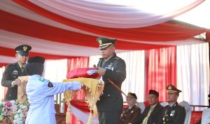 Dandim 0424/Tanggamus Letkol Inf Dwi Djunaidi Mulyono S.E.,M.I.P., memimpin upacara penurunan bendera dalam rangka memperingati Hari Ulang Tahun (HUT) ke-80 Republik Indonesia yang digelar dengan khidmat di lapangan upacara Pemda Kabupaten Pringsewu, Minggu (17/08/2025).