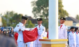 Upacara dimulai tepat pukul 17.10 WIT dengan parade pasukan gabungan dari TNI, Polri, Dinas Pemadam Kebakaran, Satuan Polisi Pamong Praja, serta Aparatur Sipil Negara.