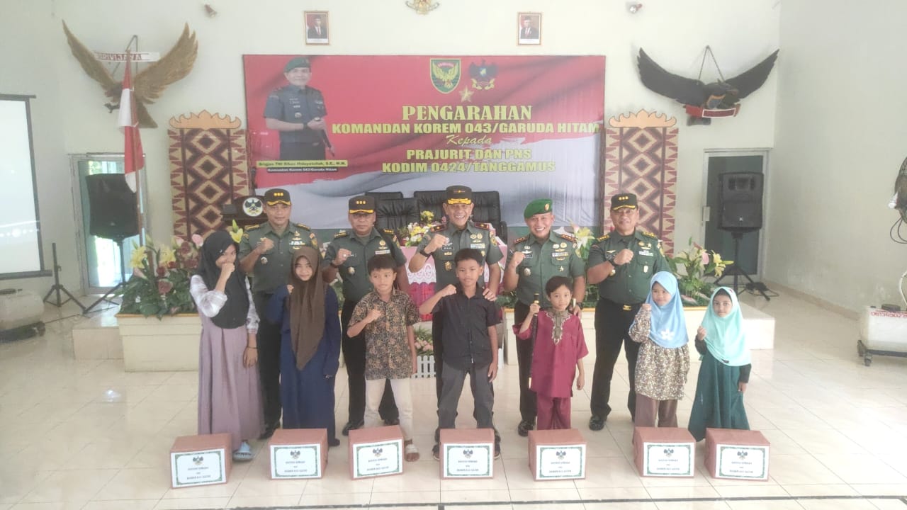 Usai memberikan pengarahan Danrem 134/Gatam Brigjen TNI Rikas Hidayatullah S.E,M.M., memberikan santunan pada anak yatim piatu diwilayah binaan kodim 0424/Tanggamus.