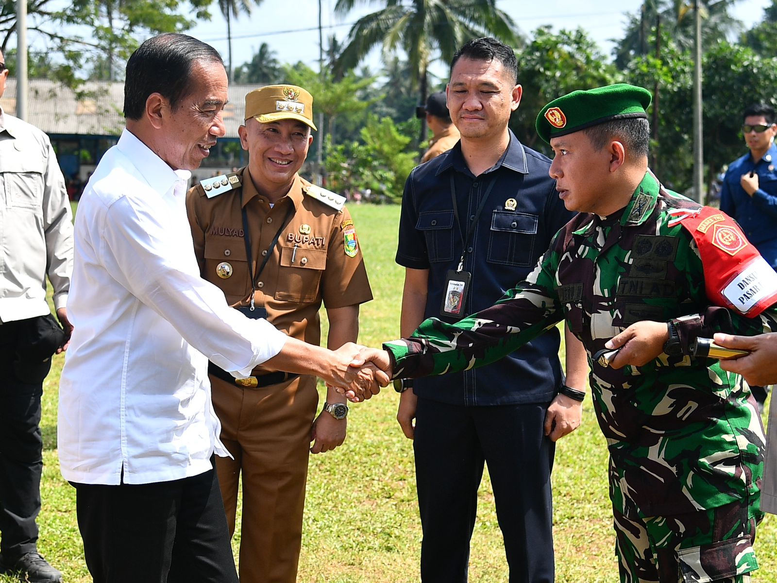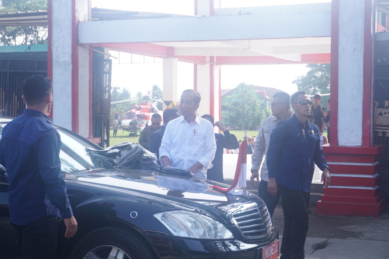 Dandim 0424/Tanggamus Letkol Inf Vicky Heru Harsanto. S.I.P., M.Si menyambut Kunjungan Kerja Presiden Joko Widodo beserta rombongan di Lapangan Merdeka Kota Agung. Jum,at (12/07/2024).