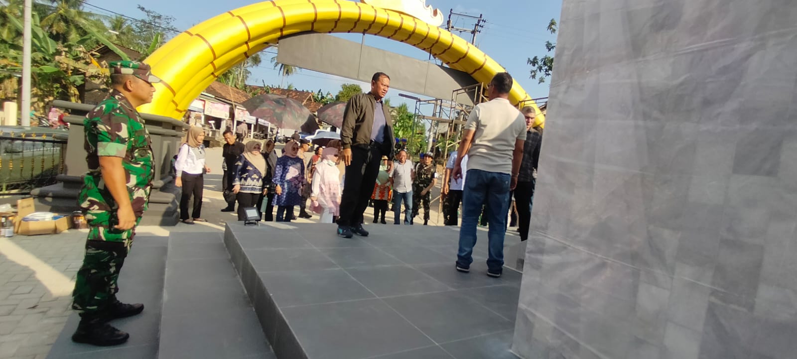 Dandim 0424/ Tanggamus Letkol Inf. Vicky Heru Harsanto, S.I.P,.M.Si menyambut Kunjungan WS Danpuspomad dalam rangka mengecek Pembuatan Tugu POM Gajah Mada bertempat di Pekon Panggung Rejo, Kec. Sukoharjo, Kab. Pringsewu, Jum’at (10/05/2024).
