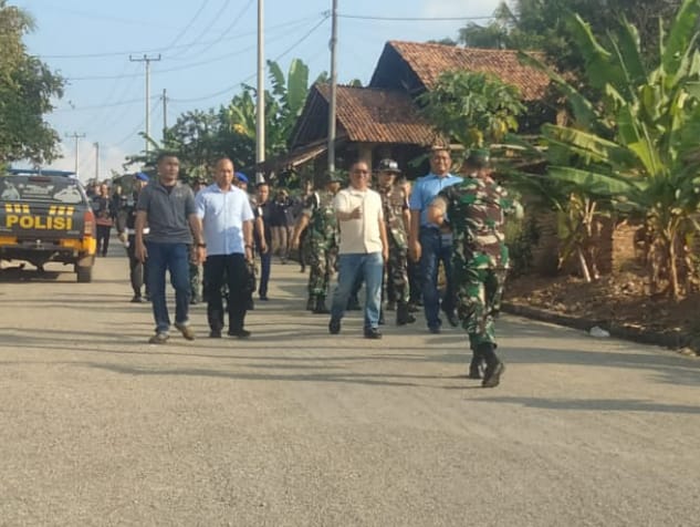 Dandim 0424/ Tanggamus Letkol Inf. Vicky Heru Harsanto, S.I.P,.M.Si menyambut Kunjungan WS Danpuspomad dalam rangka mengecek Pembuatan Tugu POM Gajah Mada bertempat di Pekon Panggung Rejo, Kec. Sukoharjo, Kab. Pringsewu, Jum’at (10/05/2024).