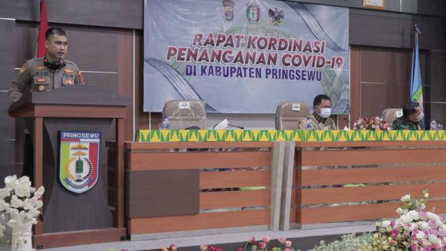 Asisten Pem Dan Kesra, Bapak Purhadi, S.Sos menyampaikan Kabupaten Pringsewu berada di tengah-tengah/lintasan dari beberapa Kabupaten diantaranya Pesawaran, Tanggamus dan Lampung Tengah. Kabupaten Pringsewu sebagai sentra bagi pelaku usaha. Berdasarkan hasil tracking di Tahun 2022 terdapat 3 orang asal Kabupaten Pringsewu yang terdeteksi terkonfirmasi Covid-19. Perlunya peningkatan peran serta dan kesadaran masyarakat untuk mencegah penyebaran Covid-19 sehingga peristiwa gelombang Covid-19 tidak terjadi kembali. Dengan adanya Inmendagri No 04 Tahun 2022, Pemerintah dan masyarakat khususnya pelaku usaha diharapkan dapat menjalankan aturan tersebut guna mencegah penyebaran Covid-19 di Kabupaten Pringsewu.