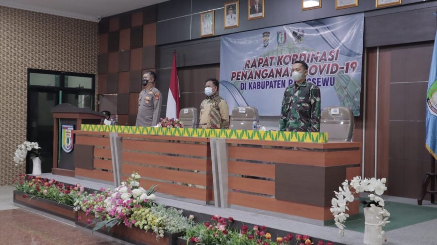 Tanggamus – Dandim 0424 Tanggamus, Letkol Arm Micha Arruan, S.E., M.M. menghadiri Rapat Percepatan Penanganan Covid 19 bertempat di Aula Utama Bupati Pringsewu. Sabtu (29/01/22).