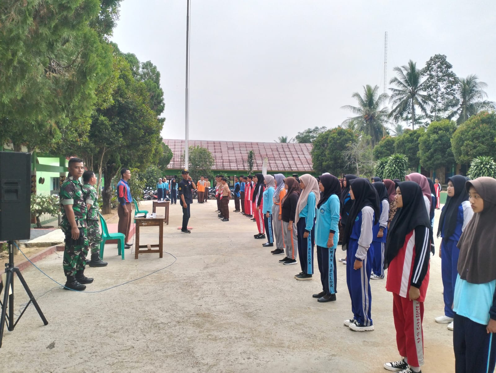 Danpos Bulok Koramil 424-10/ Pardasuka, Letda Cpl Khoirunsyah, beserta 3 orang anggota sedang menyeleksi siswa – siswi di SMPN 1 Bulok dalam rangka untuk jadi anggota Pasukan Pengibar Bendera atau Paskibra tingkat Kabupaten Tanggamus. Sabtu (20/07/2024).