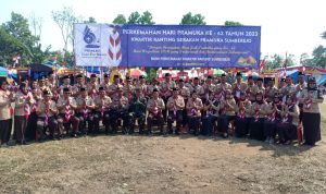 Danramil 04/Talangpadang Kapten Inf. Rio Antomi Hadiri Upacara Peringatan Hari Pramuka Ke-62 Tahun 2023 Bumi perkemahan Kwartir Ranting Pekon Margodadi Kec. Sumberejo Kab Tanggamus.