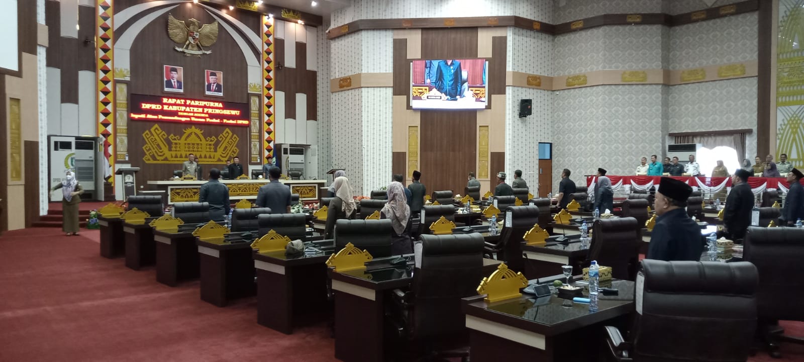 PJ. Bupati Pringsewu ( Adi Erlansyah, SE. M.M ) Menyampaikan terima kasih dan apresiasi yang tulus kepada para Anggota Dewan yang terhormat serta seluruh pihak yang telah bekerja keras dalam mempersiapkan Rapat Paripurna ini. Izinkan saya menyampaikan tanggapan atas Pemandangan Umum Fraksi-Fraksi mengenai Rancangan Peraturan Daerah Pemerintah Kabupaten Pringsewu yang telah disampaikan pada hari Senin, 05 Juni 2023.