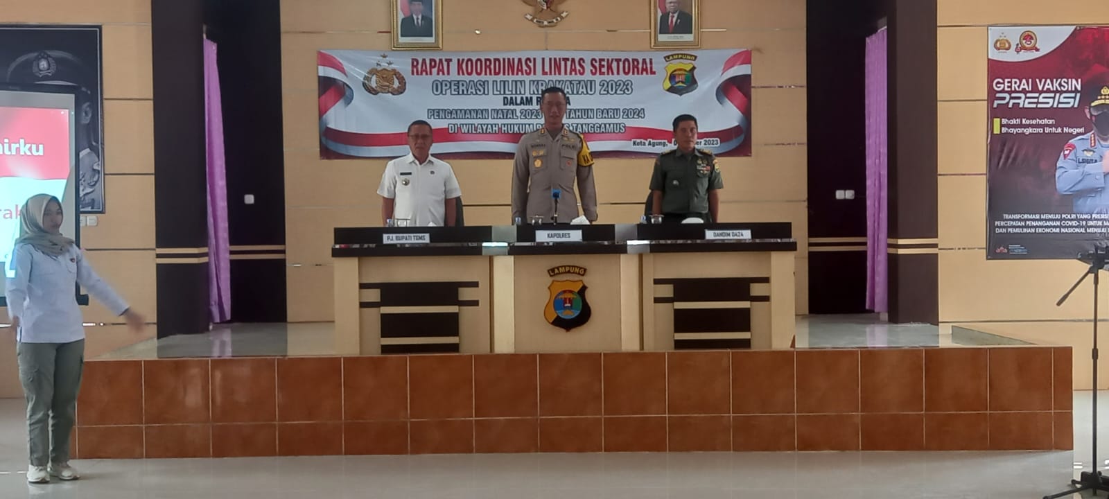 Danramil 424-03/Kota Agung Hadiri Rapat Koordinasi Lintas Sektoral Kesiapan Ops Lilin krakatau 2023 Polres Tanggamus dalam Rangka NATARU 2023-2024