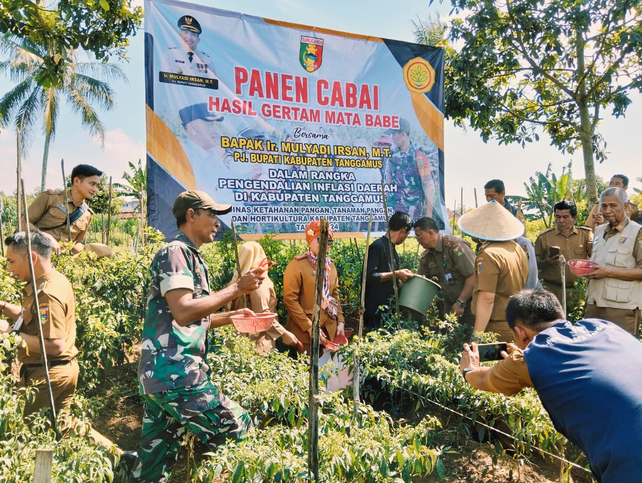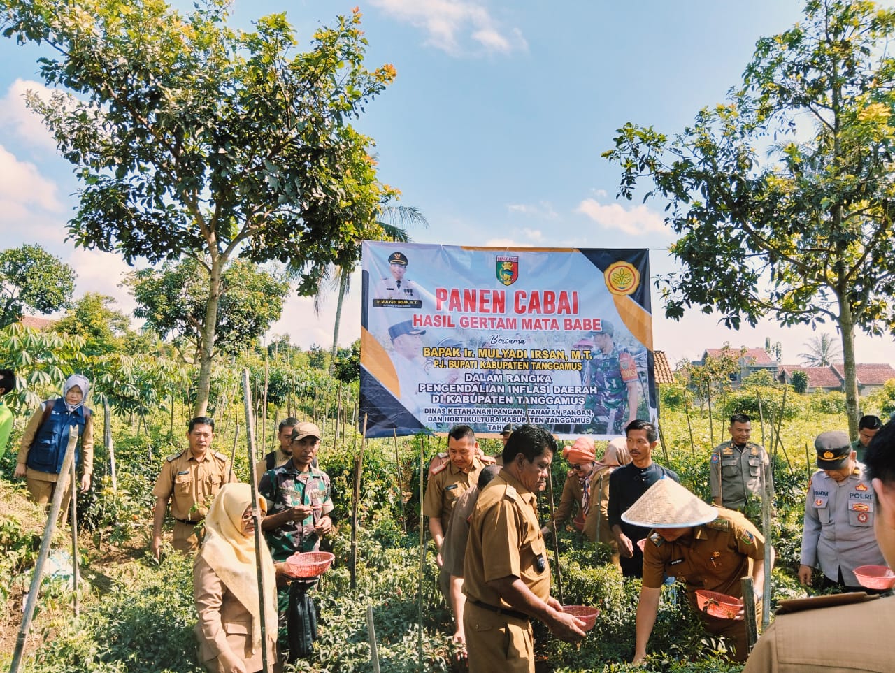 Danramil 424-04/Talangpadang Kapten Inf Rio Antomi yang di wakili Babinsanya Peltu Nurhayadi dan Sertu Syahdiar menghadiri Panen Cabai Merah Gerakan Penanaman Serentak Bawang dan Cabai (GERTAK MATA BABE) dalam rangka Pengendalian Inflasi Daerah di Kabupaten Tanggamus bertempat di Pertanian Milenial Gisting Pekon Gisting Bawah Kecamatan Gisting. Selasa (25/06/2024)