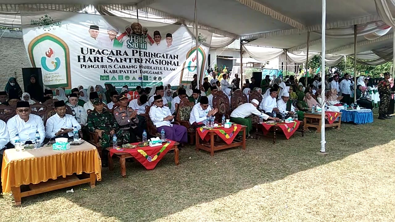 Dalam Sambutanya Pj. Bupati Tanggamus Ir. Mulyadi Irsan, M.T. menyampaikan Merujuk sejarahnya, lahirnya Hari Santri Nasional bersumber pada fatwa KH. Muhammad Hasyim Asy’ari. Sebelum fatwa itu lahir, para ulama pesantren Jawa-Madura menggelar rapat di Kantor PBNU Jalan Bubutan, Surabaya, tanggal 21-22 Oktober 1945. Hasilnya, 2 keputusan yang berhasil menggerakkan rakyat melawan penjajahan.