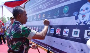 Danramil 424-06/Pringsewu Kapten Inf P Rahmad Hadiri Kirab Pemilu Kabupaten Pringsewu Tahun 2023. bertempat di Lapangan Pemda Pringsewu. Rabu (27/09/2023).