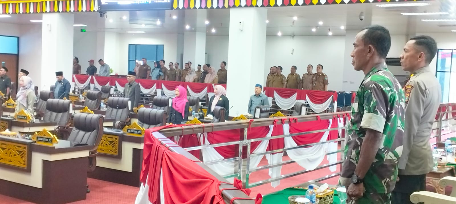 Danramil 424-06/Pringsewu Kapten Inf P. Rahmat H, S.Sos menghadiri kegiatan Rapat Paripurna dalam rangka Jawaban Bupati atas pemandangan umum Fraksi Fraksi DPRD, bertempat di kantor DPRD kabupaten Pringsewu, Selasa (28/05/2024).