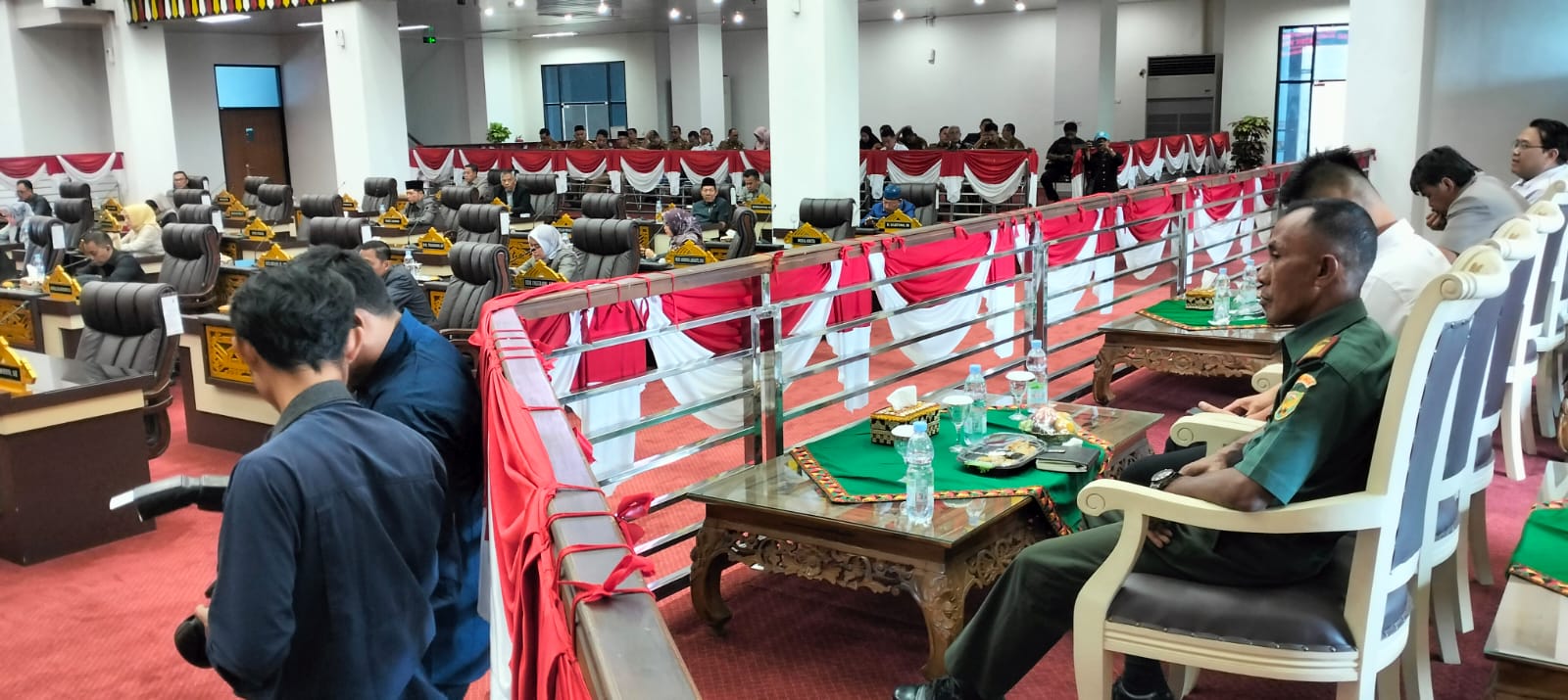 Danramil 424-06/Pringsewu Kapten Inf P. Rahmat H S.Sos., menghadiri Rapat Penyampaian Perubahan KUA dan Peeubahan PPAS Kabupaten Pringsewu Tahun Anggaran 2024 bertempat di Gedung DPRD Pringsewu, Senin (22/07/2024).