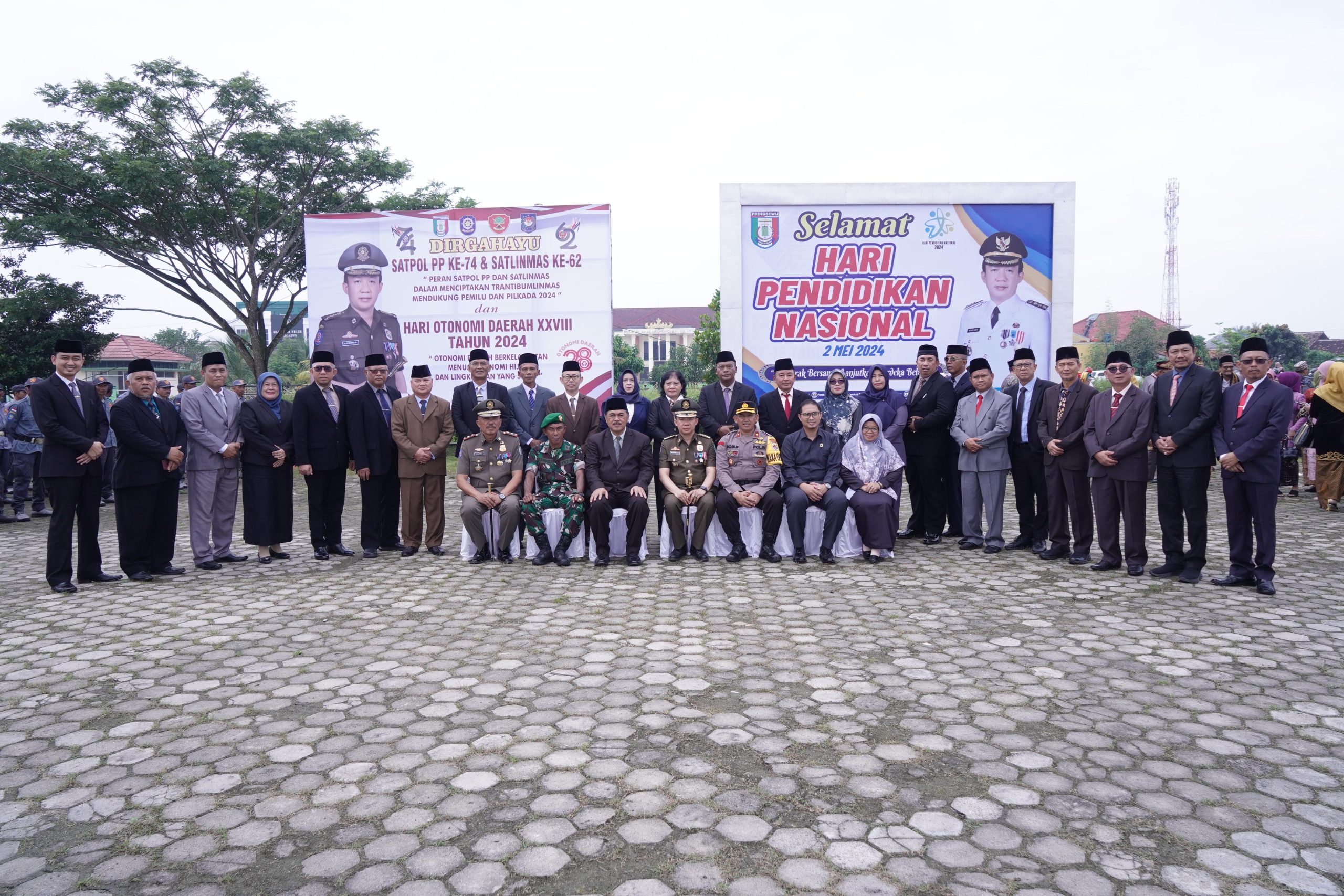 Dalam Amanatnya Pj. Bupati Pringsewu Dr. Malindo, S.T, M.M Menyampaikan Pada pagi hari ini kita dapat melaksanakan Upacara dalam rangka memperingati Hari Pendidikan Nasional dan Hari Otonomi Daerah Ke- 28, serta HUT Satpol PP ke-74 Dan Satlinmas ke-62 Kabupaten Pringsewu Tahun 2024,dalam keadaan segar, sehat dan penuh semangat.