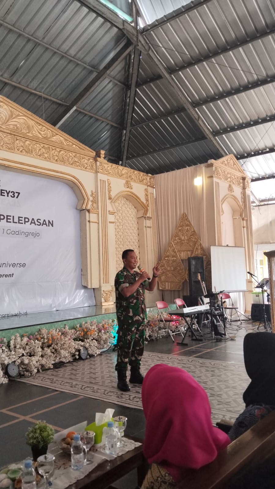 Danramil 424-07/Gadingrejo Kapten Inf Redi Kurniawan Beserta 1 orang anggota menghadiri Acara Perpisahan Siswa Siswi kelas 12 SMA N 1 Gadingrejo, di Aula SMA N 1 Gadingrejo. Senin (29/4/24).