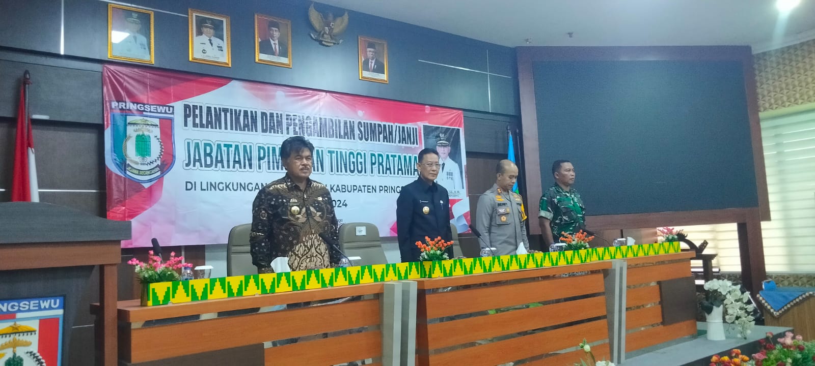 Pelaksanaan pelantikan 3 orang Pejabat Pimpinan Tinggi Pratama di Lingkungan Pemerintah Kabupaten Pringsewu hari ini, dilaksanakan berdasarkan Keputusan Bupati nomor: 821.2 B.04/2024 tanggal 01 Februari 2024 tentang Pengangkatan, Pemindahan Dan Pemberhentian Pegawai Negeri Sipil Dari Dan Dalam Jabatan Pimpinan Tinggi Pratama di Lingkungan Pemerintah Kabupaten Pringsewu.